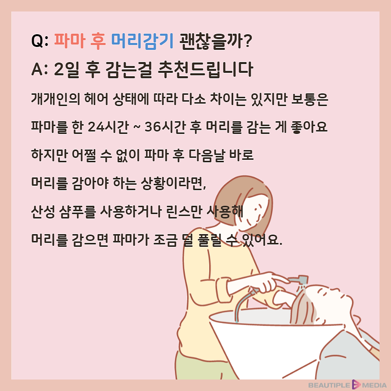 파마 후 머리는 언제 씻을 수 있나요?