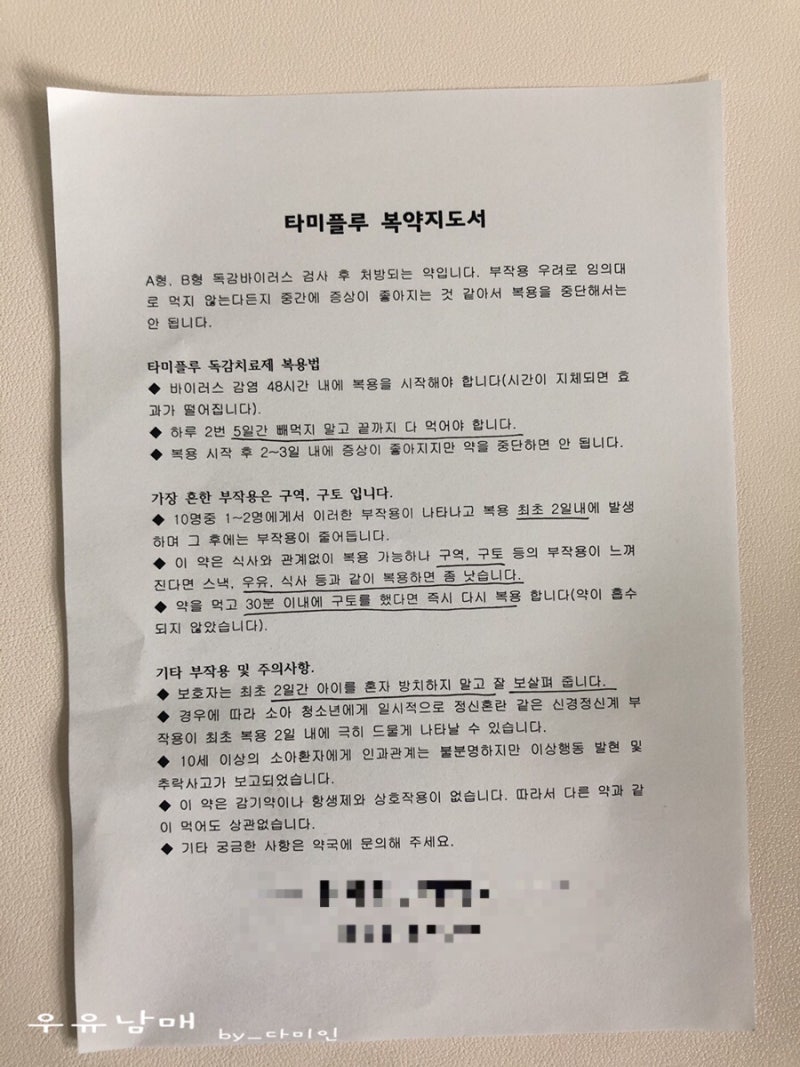 제 경험에 따르면, 놀랍게도 절대 낫지 않을 것 같았던 많은 증상들이 하루가 지나자 완화되고 기분이 좋아졌습니다. 하지만 저와는 달리 항바이러스제인 타미플루로 인해 부작용을 겪는 분들도 계시니, 혹시 모를 상황에 대비하시기 바랍니다. 살펴보자 (참고로 타미플루 독감약은 일반적으로 체내 흡수가 쉽고 안전한 약이다.) 독감약의 부작용 일반적으로 복용하면 메스꺼움, 메스꺼움, 복통, 설사, 구토가 발생할 수 있으며, 경우에 따라서는 약을 복용한 후 30분 후에 토했다면 다시 복용하지 않아도 됩니다. 다음 복용 시간에 복용하시면 됩니다. 30분 이내에 토했다면 다시 복용해야 합니다.