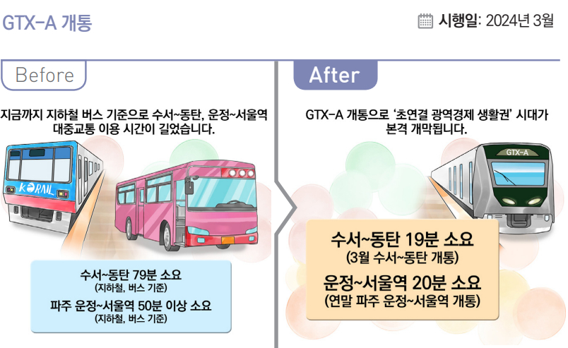 어쨌든 GTX가 개통되면 현재 지하철로 1시간 넘게 걸리던 구간이 30분 이내로 대폭 단축돼 서울 주요 업무지구까지 이동할 수 있게 된다. 수도권 통합환승할인제도를 도입해 고비용 논란이 어느 정도 해소될 전망이다. 가능할까요? 앞으로 GTX가 열리는 지역을 꼼꼼히 살펴봐야겠습니다.